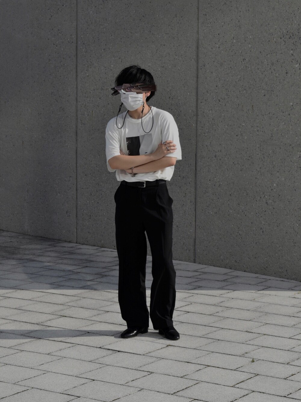 zenのスラックス「セミワイド カラースラックス ユニセックス(ジョーゼット/ウール混の2タイプ) je-101 chw869【ベーシックライン】」を使ったコーディネート