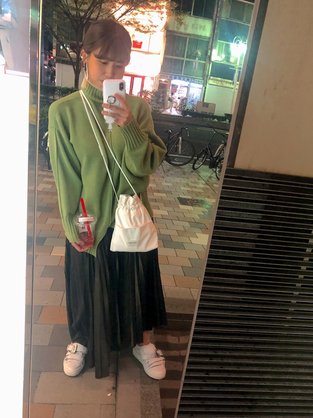 riho.のショルダーバッグ「【beautiful people/ビューティフルピープル】《STUDIOUS別注》2WAYレザー巾着バッグ」を使ったコーディネート