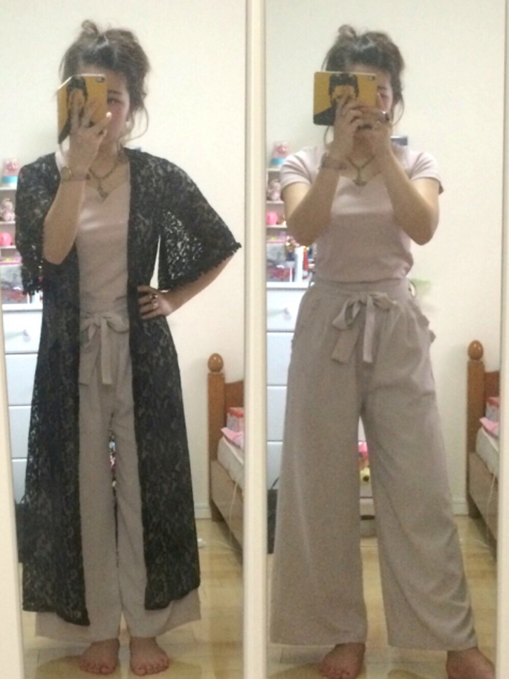 トップスとパンツは別々だけどピンクには目がないものでついつい同じようなピンクが集まり…セットみたいなコーデができあがる(笑) トップスは2000円しないプチプラさ! 形が綺麗だし色が可愛い♡ パンツも安いし可愛い\(^o^)/ 羽織は黒レースでアンティークに♪ これも綺麗なのに4000円くらい! 今日はヌーディーコーデ❤︎❤︎ 暑いから髪型はちょっとかっこいい感じのアップスタイル♪ 最近コメントやフォローをしてくれる方が増えて嬉しいです(*´ω`*) ありがとうございます!