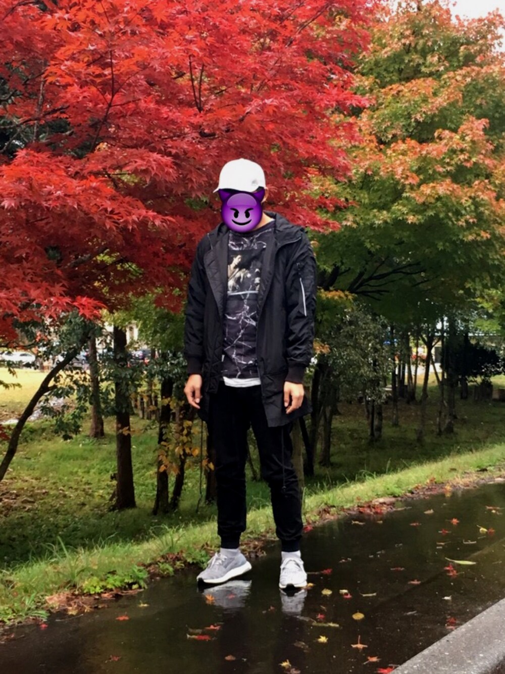 OFF-WHITEをジョガーパンツ、ultraboost、ボンバージャケットの素材感でスポーツテイストに。 カラーもモノトーンにすることにより、大人っぽく。