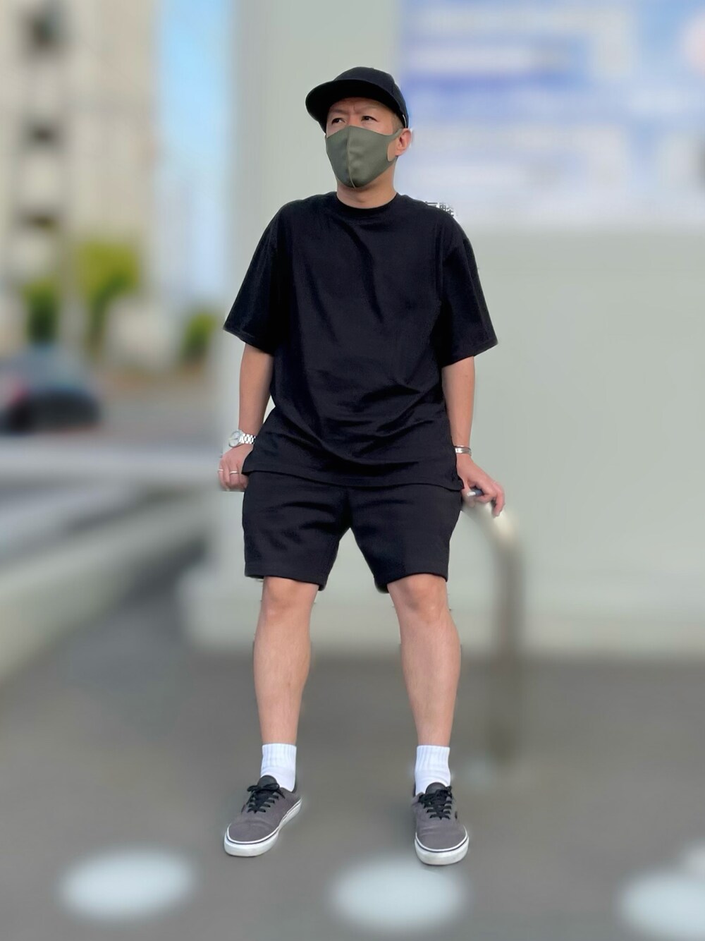 ご覧いただきましてありがとうございます😊ビッグTにゆったりめのスウェットショーツを合わせています👕タイトなVANSERAをはいてコンパクトにまとめました😁