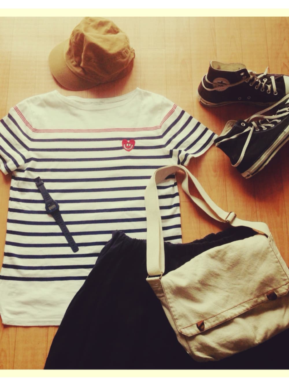 幼稚園送りコーデ シンプルに動きやすく!! 早く秋にな〜れ〜!!