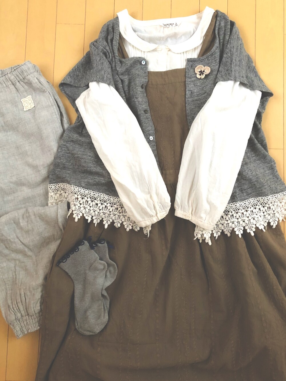 定番コーデ(*´-`) 大好きなエプロンワンピ。