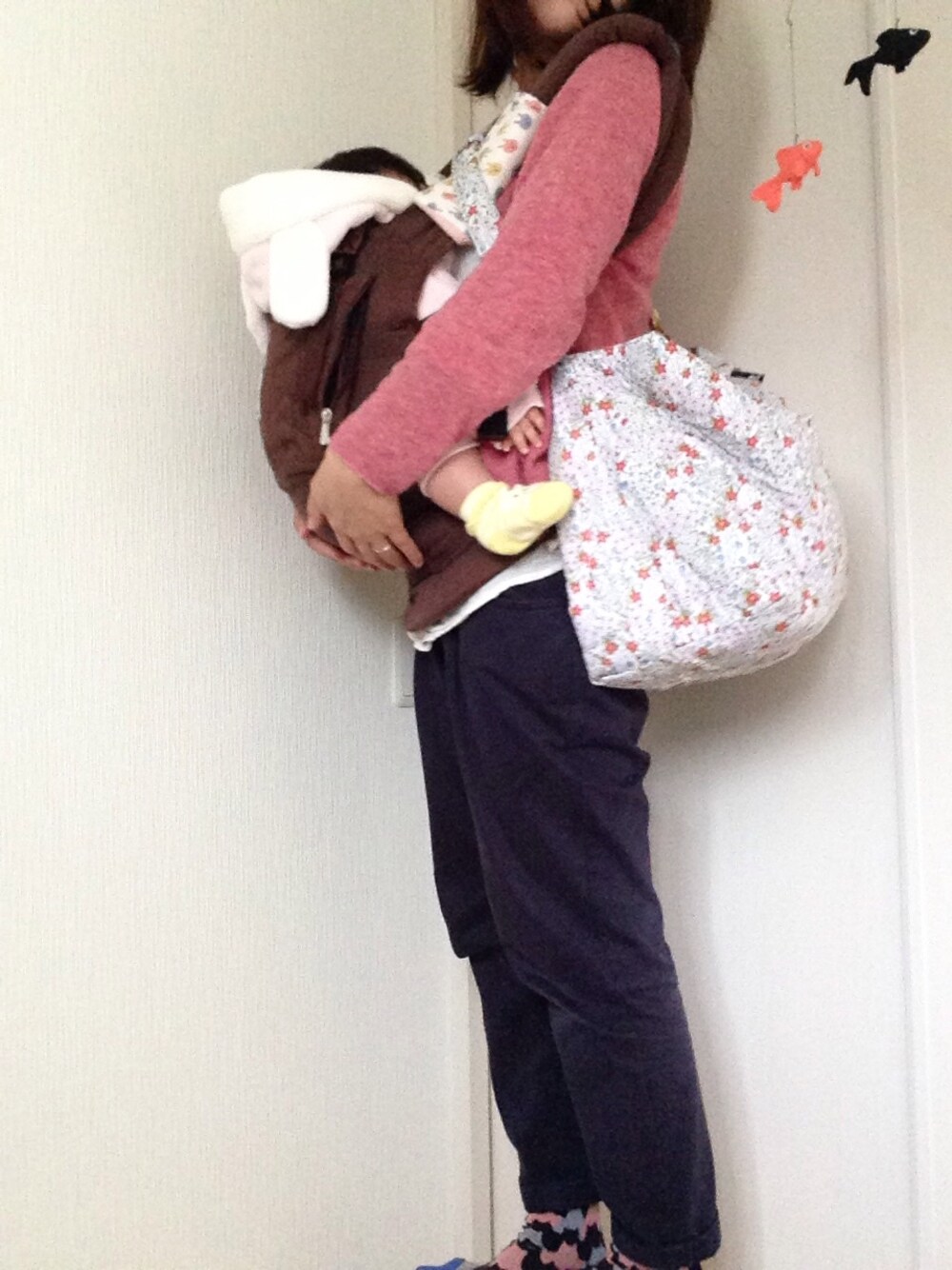 今日は寒くて冬支度に逆戻り(・・;) これから職場の元同僚のお母様に会いに行って来ます(^^) 歳は離れてるけど仲良くしてもらってて感謝♡ 荷物が多くていつも友達にびっくりされるけど何を減らせばいいか分かりません(・・;) このマザーバッグは小花柄でお気に入りです(^O^) 娘は今日会うお母様にもらったコムサのロンパースと靴下に、うさぎの着ぐるみ。