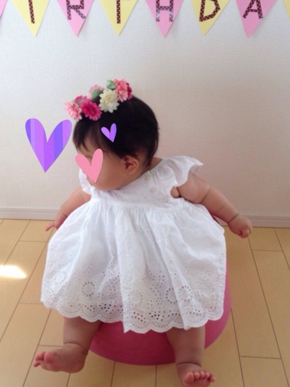 娘、ハーフバースデー♡ DAISOグッズで手作り花冠。