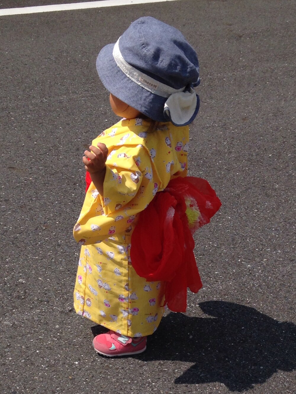 7月、娘1歳7カ月。 地元のお祭り♪ ばーば作の浴衣に、私が子どもの頃使ってたへこ帯!ばーばチョイスの浴衣の柄がすごいレトロ笑