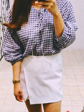 「アイテム(シャツ/ブラウス、ホワイト系)」を使った、김혜리さん(レディース・161cm)の夏コーディネート