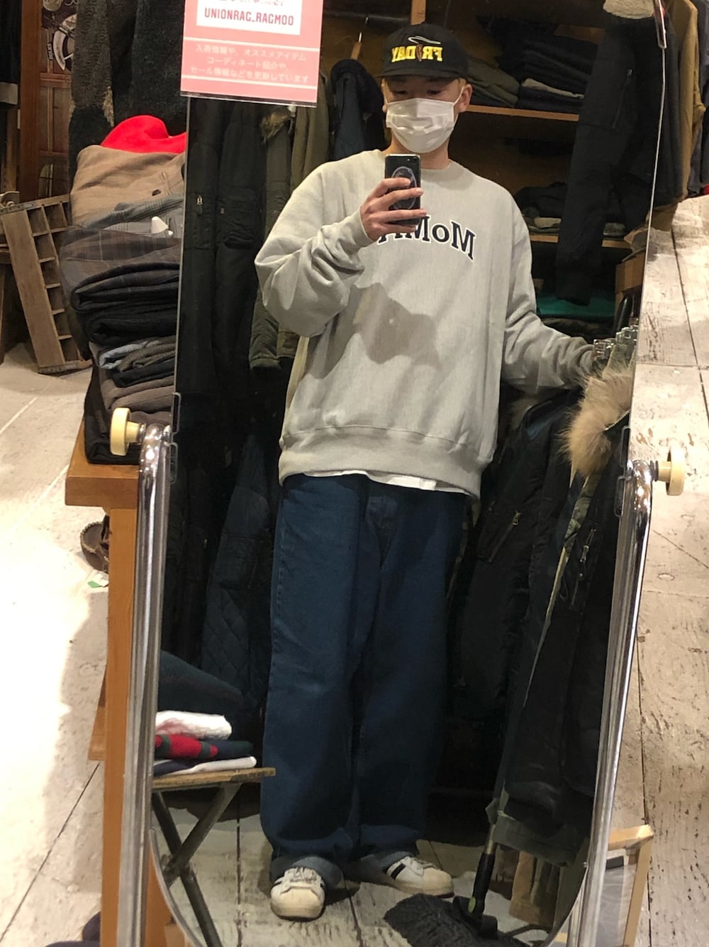 開店前にいつも掃除して出迎えてます 古着屋だけどあんまり古着は着てないです