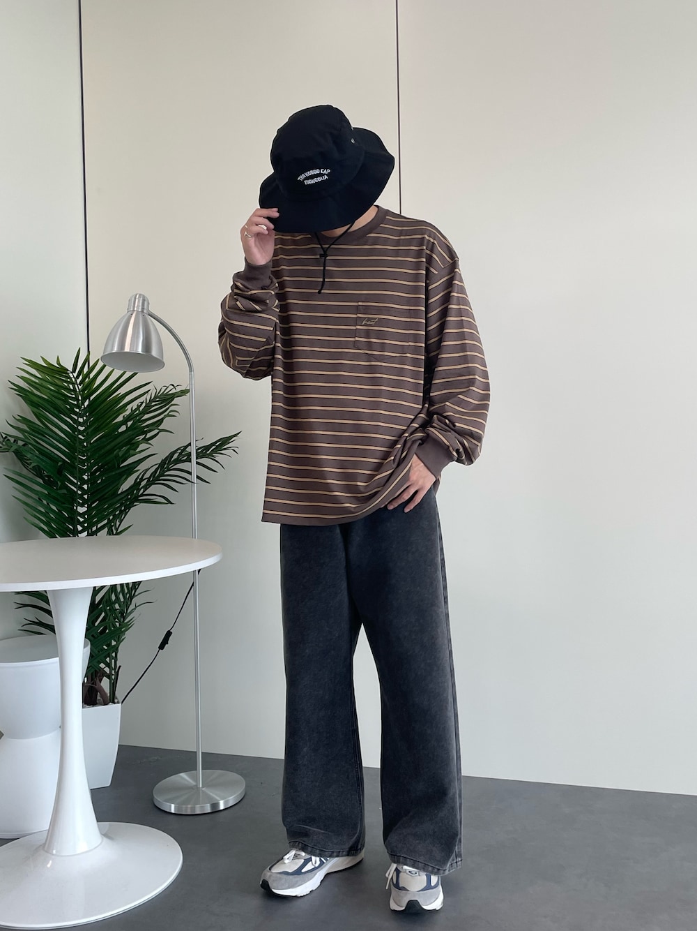 週一朝マック(MONO-MART)のTシャツ/カットソー「【HECT】Big Border L/S Tee / ビッグシルエットボーダーロンT」を使ったコーディネート