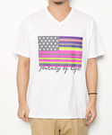 HiRo🇺🇸のTシャツ/カットソー「メンズ カラフルボーダー フラッグ Tシャツ」を使ったコーディネート
