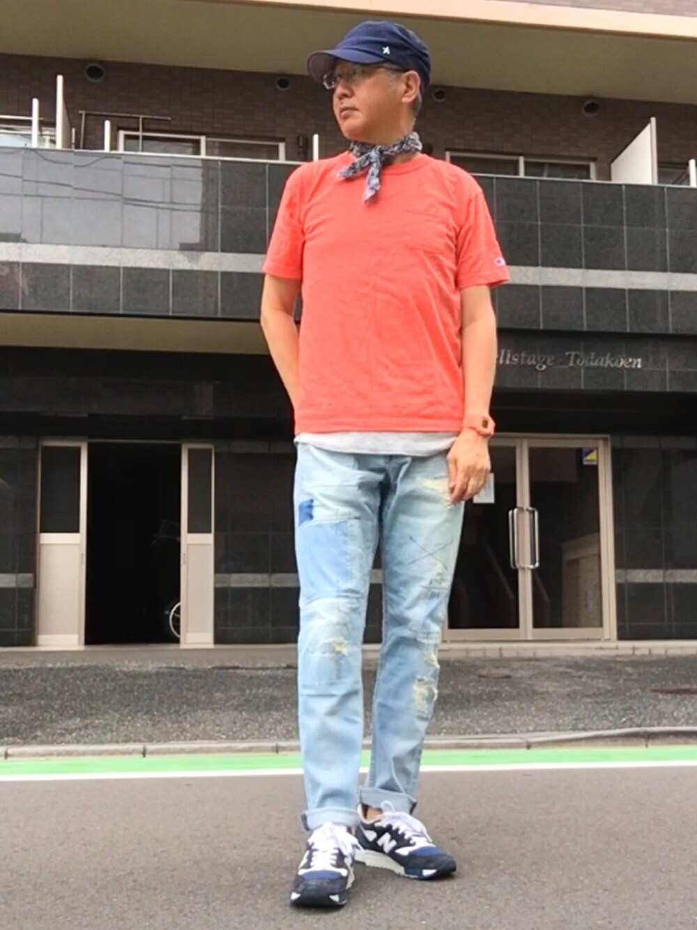 おはよーございます♩ いつも見に来て頂きありがとーございます♩ 昨日の投稿で餃子を作った話をしたら反響が高かったので、昨日も残っていたのを調理して写真を撮りました👍 餃子を作る時は必ず2種類作るんです❣ 焼き餃子は豚の挽肉で外パリパリ中ジューシーに♥️ スープ餃子は鶏の挽肉で外モチモチ中さっぱりで醤油ベースの中華スープに白菜と一緒に茹でます💚 焼き餃子がおかずでスープ餃子は味噌汁的な感じです🤗 コーデですが、Bayflowのリペアデニムが気に入ってしまい、色違いを買ってしまいました😍 今回はウォッシュドのリペアです🤗 サーモンピンクのT1011にレイヤードでアクセントを。 キャップ、スニーカー、バンダナはネイビーで統一しました✌️ 腕元はTシャツに合わせたサーモンピンクGです😊 では素敵一日をお過ごしください🤗