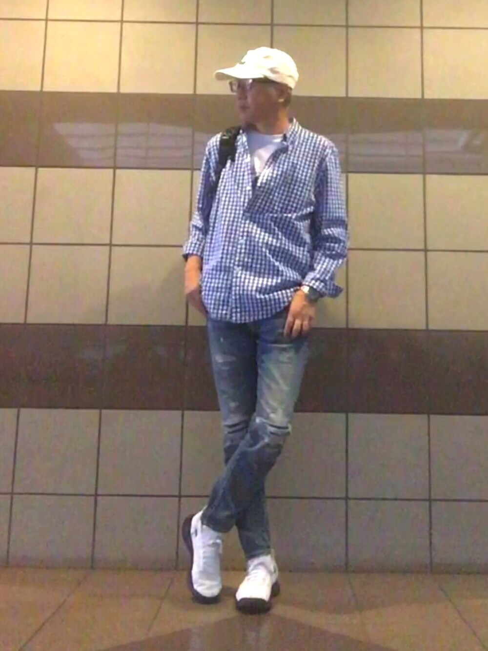 おはようございます🙋♂️ いつも見に来て頂きありがとうございます😊 梅雨の時期うっとおしくて、コーデだけでも爽やかに☝️ 青のギンガムに白の上下で挟みました😊 素敵な一日をお過ごしください🤗🍒🍒🍒