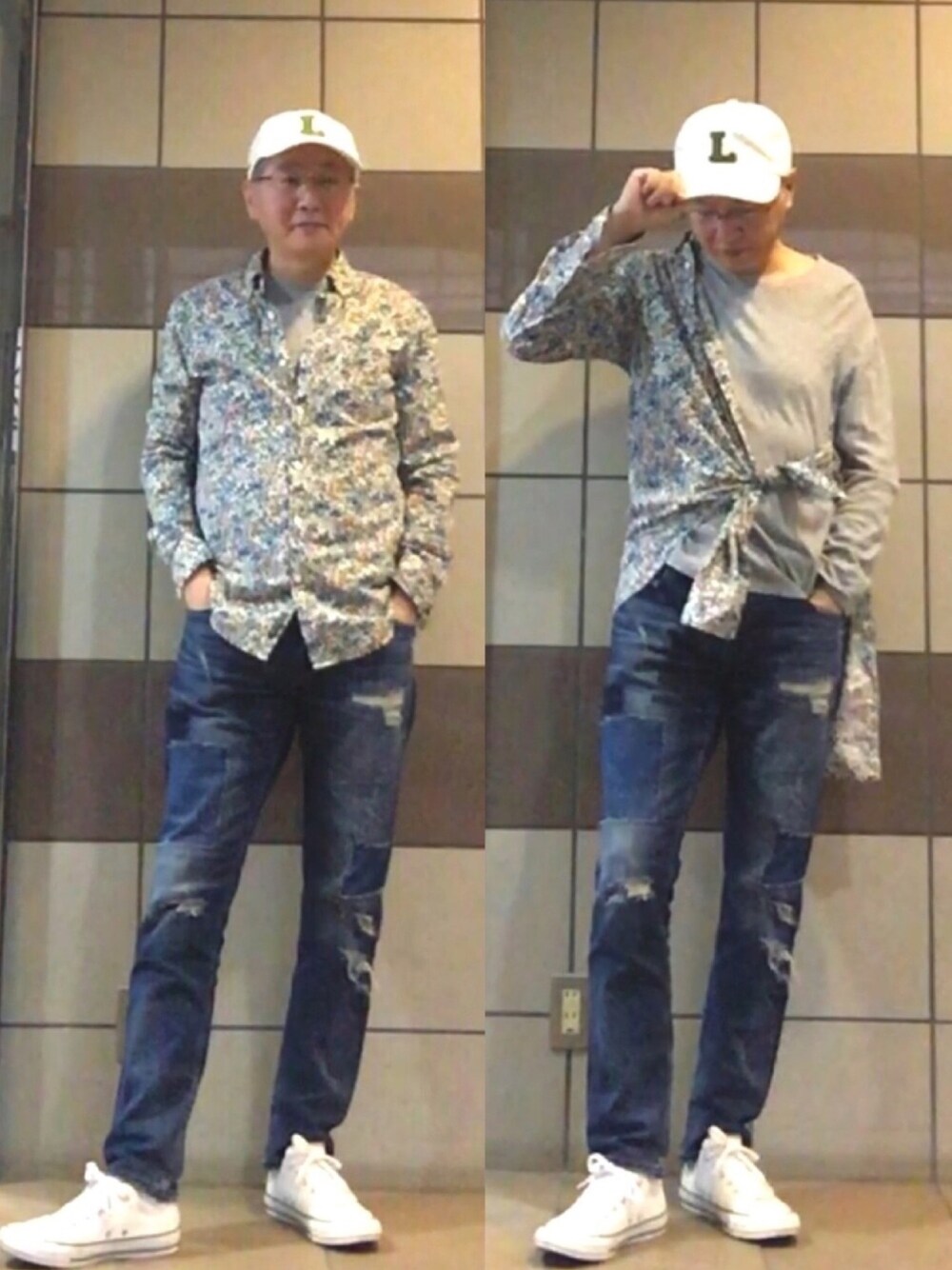 おはようございます😃 いつも見に来て頂きありがとうございます😊 テレワークが続くと週末と言う感覚がなくなっちゃいますネ😅 今日のコーデは、シャツの片袖巻き❓ にトライしてみました😊 フォロワーのももちゃんとYukoさんがやってるのを真似してみました☝️ これ一体なんと言うんでしょ❓ インナーのTシャツの色がちょっと薄かったと反省😅 それになんだか胸が膨らんでるような😱 在宅太りが胸に来た❓ では今日も穏やかな一日になりますように☺️ ガンバレニッポン🇯🇵 ももちゃん、Yukoさん、写真の使用失礼しました🙇♂️