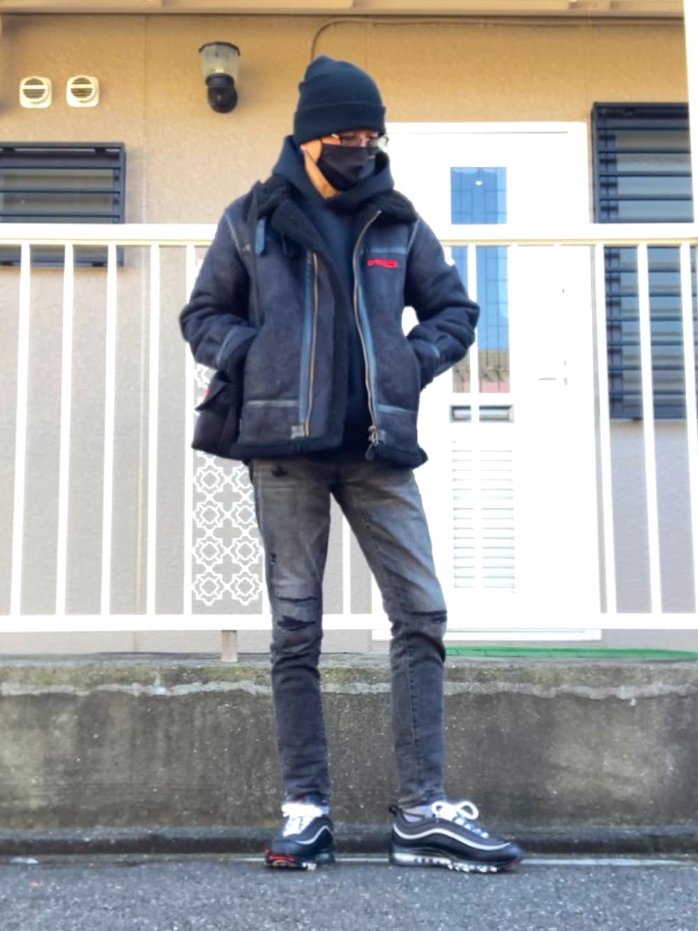 おはようございます🙋♂️ いつも見に来て頂きありがとうございます😊 自分へのお年玉でエアマックス97をまた買ってしまいました🤗黒の新作ですが白のラインとシューレースがかわいい😍 B3ジャケットと合わせてブラックトーンで☝️ 今日も素敵な一日をお過ごしください🍒🍒🍒