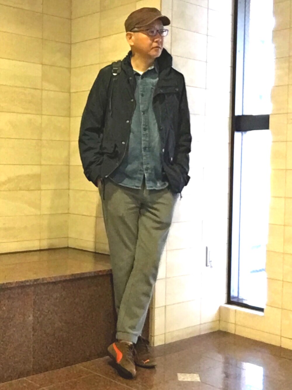 皆さん、おはよーございます♩ いつも見に来て頂きありがとうございます♩ デニムシャツにマウンテンパーカを合わせてみました。 キャップとスニーカーはブラウンでしめてみました😊 今日も素敵な1日をお過ごしください🤗