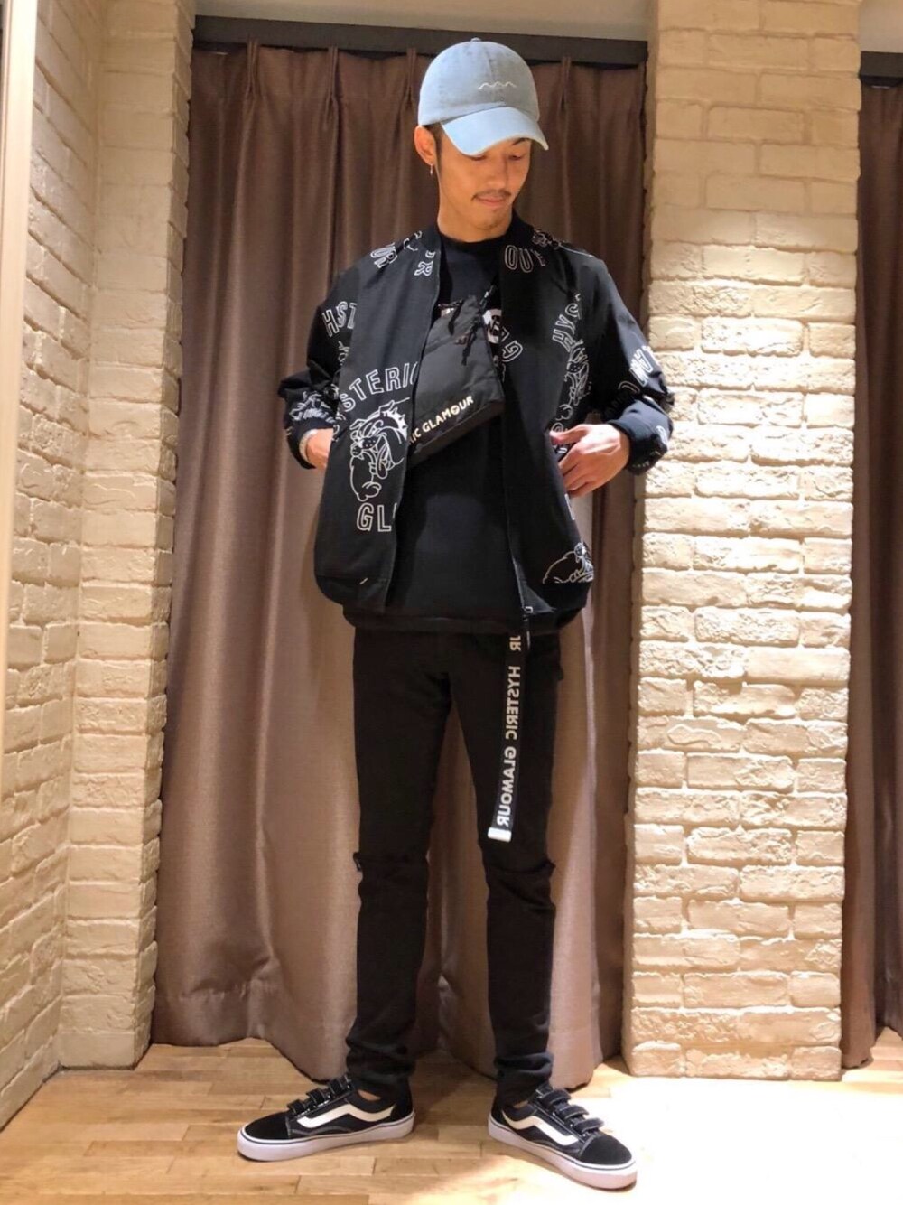 いつもご覧頂きありがとうございます(^ ^)全身にロゴをちらしたヒスならではのコーデで。 アウターはレディース商品ですがざっくりしたサイズ感で自分のような身長のメンズが着てもまったく問題なく着れます。