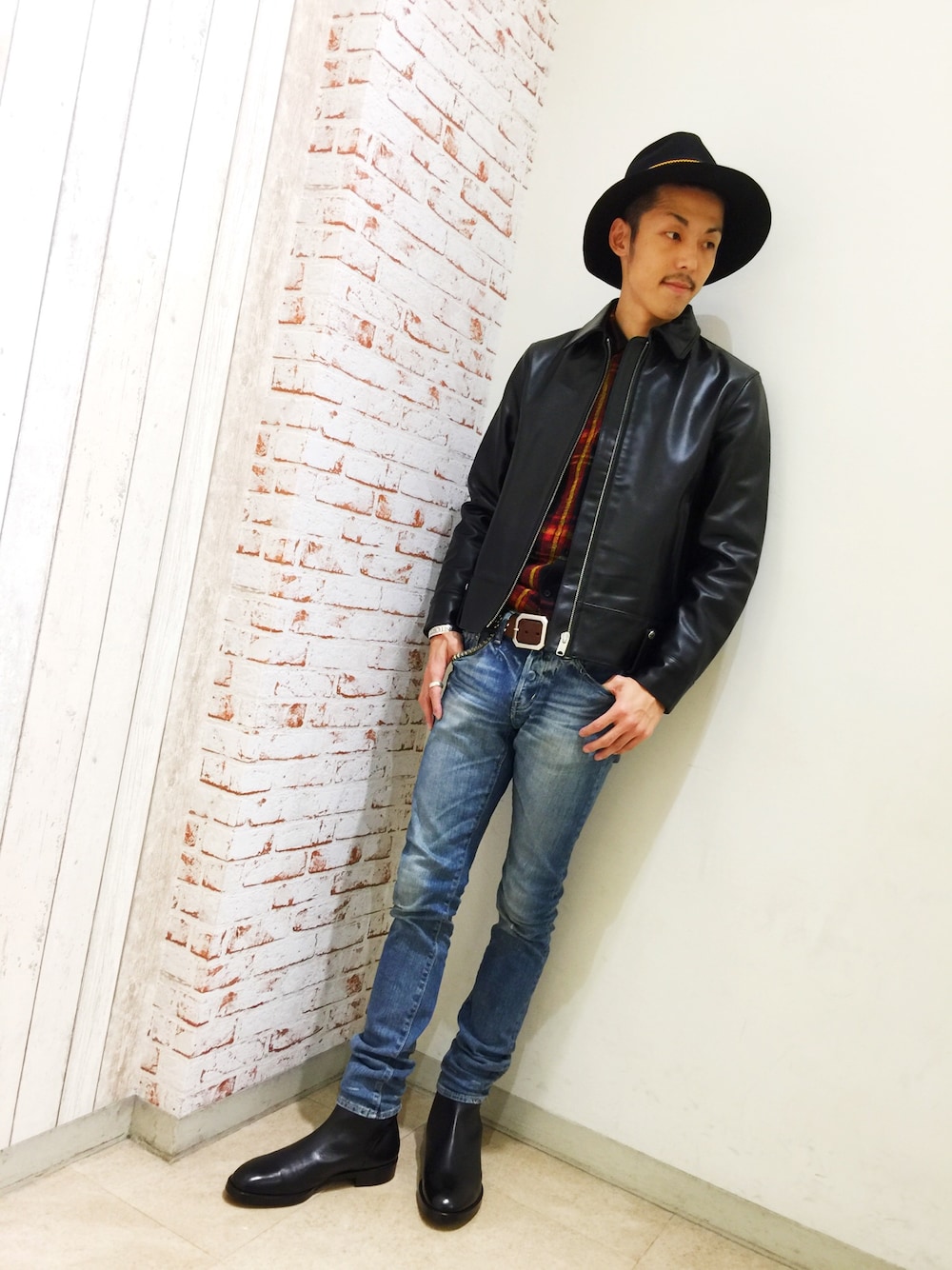森 拓巳(HYSTERIC GLAMOUR渋谷店)のライダースジャケット「ホースレザー シングルJK」を使ったコーディネート