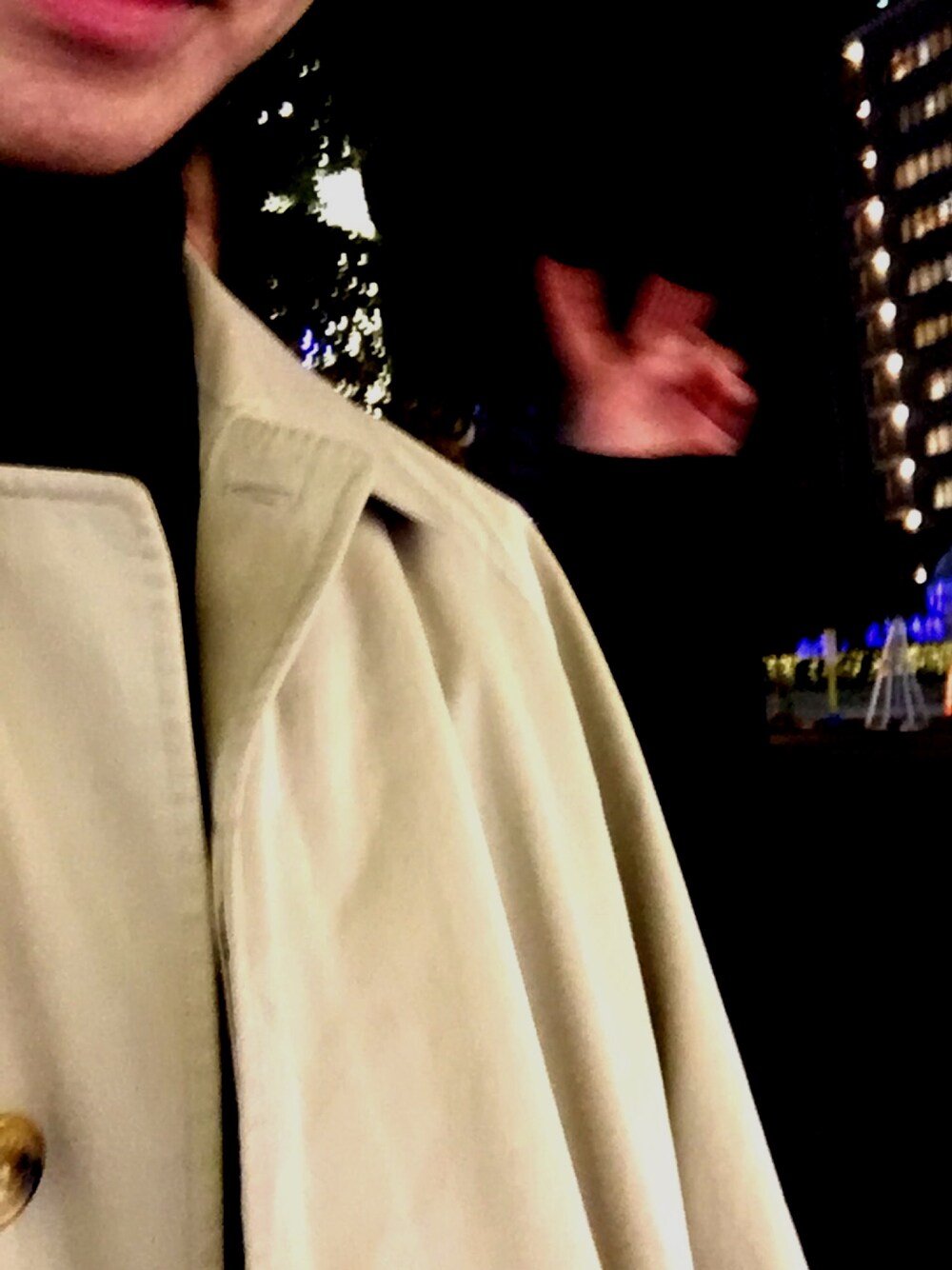 コートにニットの王道ファッション あんぱい