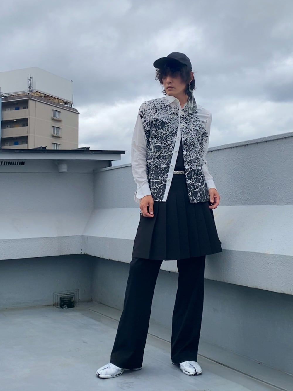 こんにちは。 前回のCILANDSIA繋がり。 このシャツはプリントした生地を仕立てているのではなく、 製品染めのように仕立てたシャツの上からプリントしており、 ボタンなんかにも塗料が付いています。 このライブ感が魅力的。 インナーやボトムスが黒なので パッと見で透けてるように見え……んな。