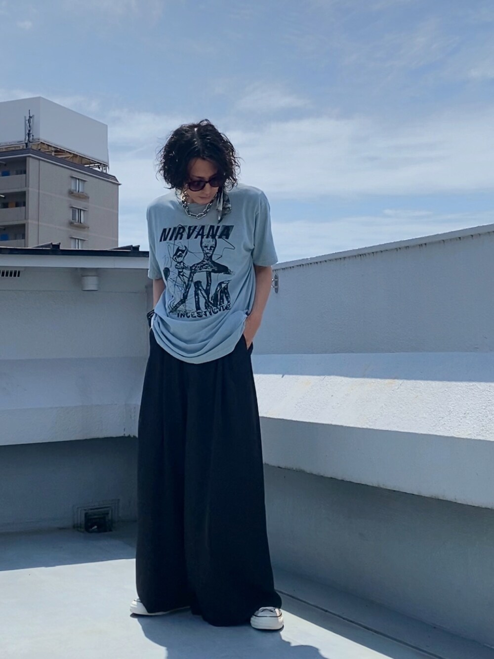 こんにちは。 本日はNirvanaです。 ロックファンにはもはや説明不要の90年代のアイコン。 グランジを代表するアーティスト。 既に色々な所で語り尽くされているので 今更僕が何か語るような事もありませんが、 僕としても好きなアーティストの一つです。 ただ現代ではポップアイコン化されすぎてしまっていて グッズ類が独り歩きしている印象(特にスマイリー)で 中々手を伸ばす気にはなれないのが本音。 こちらのTシャツはふらりと入った古着屋にて購入。 (古着じゃなかったけど) まずフォトプリントとかじゃなくて モチーフがアルバムジャケットで、 しかも「NEVERMIND」でも「In Utero」でもなく 「インセスティサイド」という点がイイ。 それと絶妙な色合いも良かったです。 ちなみに音楽的には断然「In Utero」が好きです。