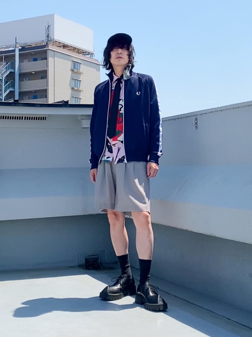 hytabのジャージ「Taped Track Jacket/フレッドペリートラックジャケット」を使ったコーディネート