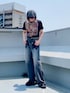 こんにちは。 足し算足し算で組んだようなガチャガチャしたコーデ。 どう考えてもシンプルな無地T合わせの方がセンス良い。 でもこの日はどうしてもどうしても それを引っ張り出してくるのが面倒だった、そんな日。 夜までフラフラ出ている予定だったので 薄手のブルゾンを羽織ってみたものの 日中はやはり暑すぎました。 最後のチャンスと思ったんだけれど。