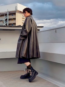 こんにちは。 迷っていたコートがセールにかかっていたので 金欠なのに飛びかかっていきました。 もう夕方だったのですが嬉しくてそのまま撮影。 所謂フェイクレザーですが、だからこそとても軽く 動いた時のドレープが好きすぎてずっと身体を動かしています。 リアルレザーだとこのドレープは出ない気がする。 あと金額的に手が出ない気がする。 そうそう、コートにショーツを合わせるのが 何だか最近気に入っています。