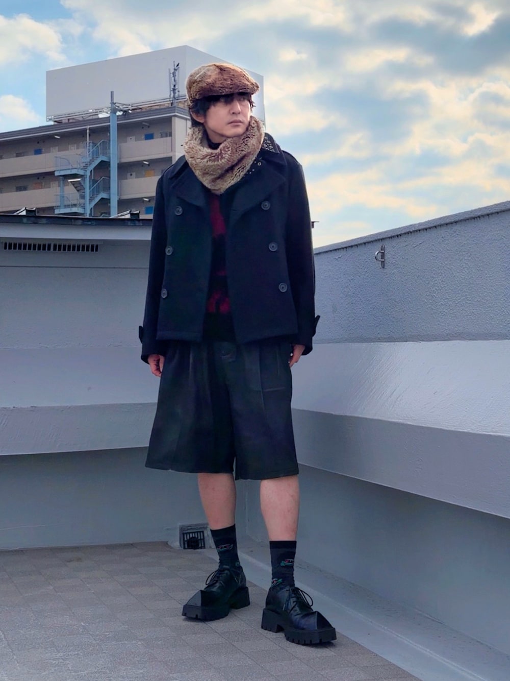 こんにちは。 26SSが続々と立ち上がっていますが 皆様は既に何かゲットされましたか? 僕は12月だというのにショーツをゲットしました。 ぱっと見の光沢にレザー感ありますが レザーではなくコーティングされたパンツで 元がジャージ生地なので穿きやすいです。 以前、イギリスの少年をイメージ(あくまでイメージ)して ショーツにピーコート、ブーツを合わせていて 路面電車で向かいに座った見知らぬおばあちゃんに すごく心配された事も今となっては良い思い出。 今季はショーツ合わせをする事が多いので ちょっと思い出してやってみました。 少年感は無いけどね。 ファー小物とインナー&バックベアード様の赤がアクセントです。