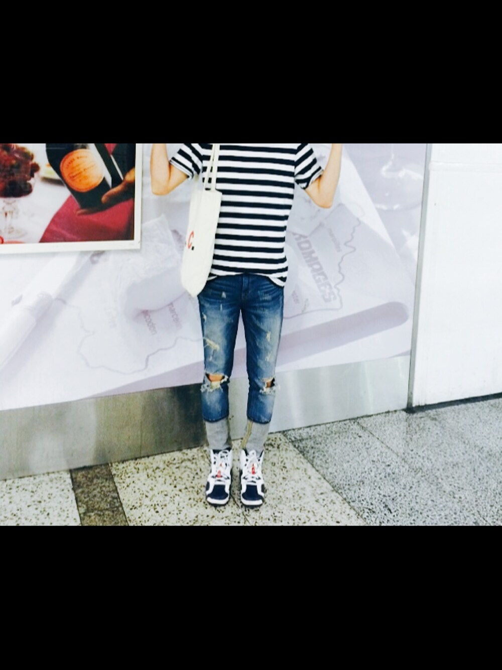 暑くてこんな格好では出かけちゃダメですね; 半ズボンは履かないから; 秋ぐらいになったらいいかもしれないですね。 早く秋来ないのかな