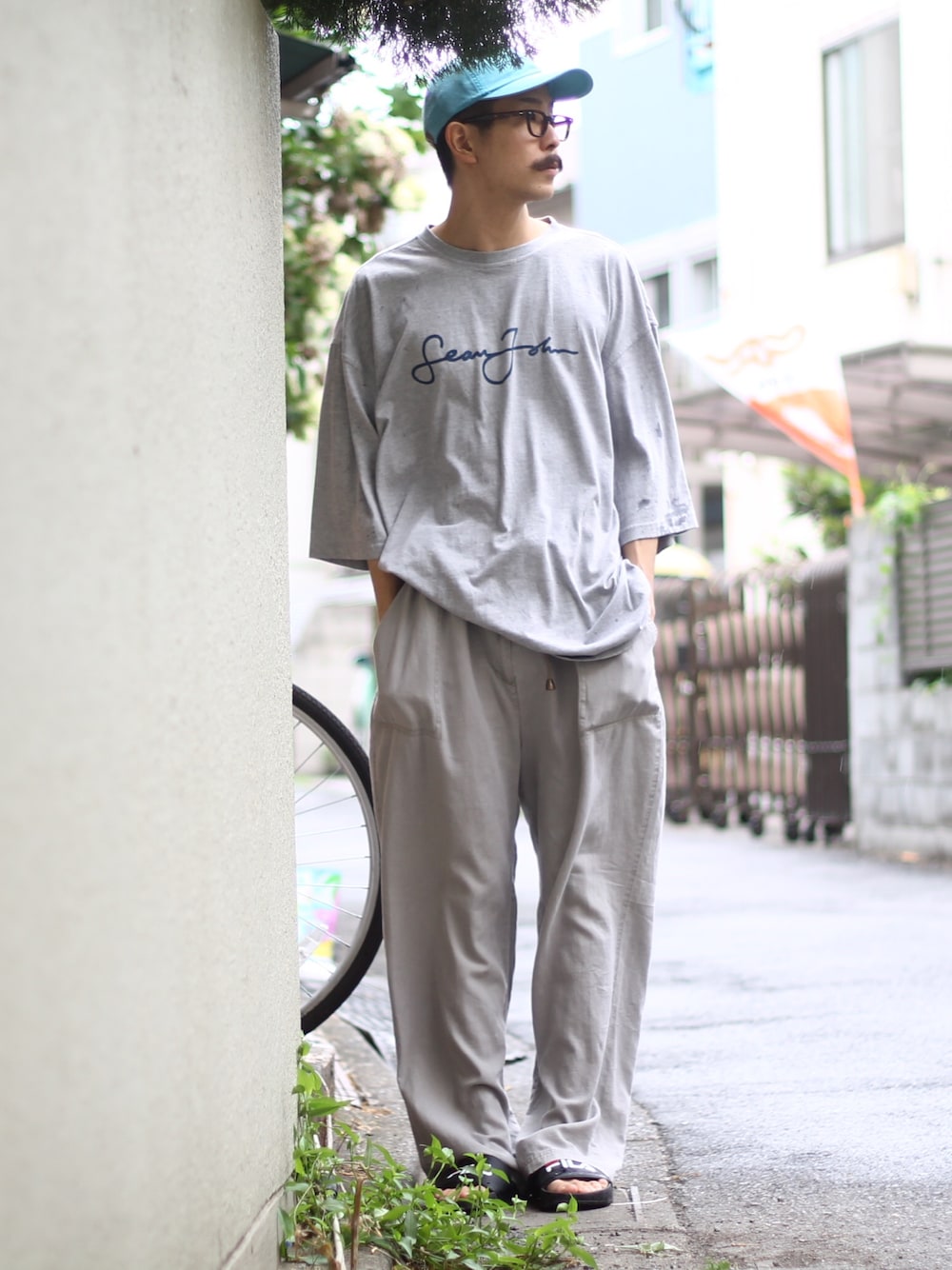 〈style sample〉 tops : "SeanJohn" logo print T-shirt pants : linen wide easy pants acc : color cotton cap - - - - - グレー中心のコーデで。 ラフな格好ですが色を統一してあげるといい感じに。 SeanJohnって昔流行りましたよね? Bボーイ的なイメージあったんですがロゴが可愛いんです〜〜