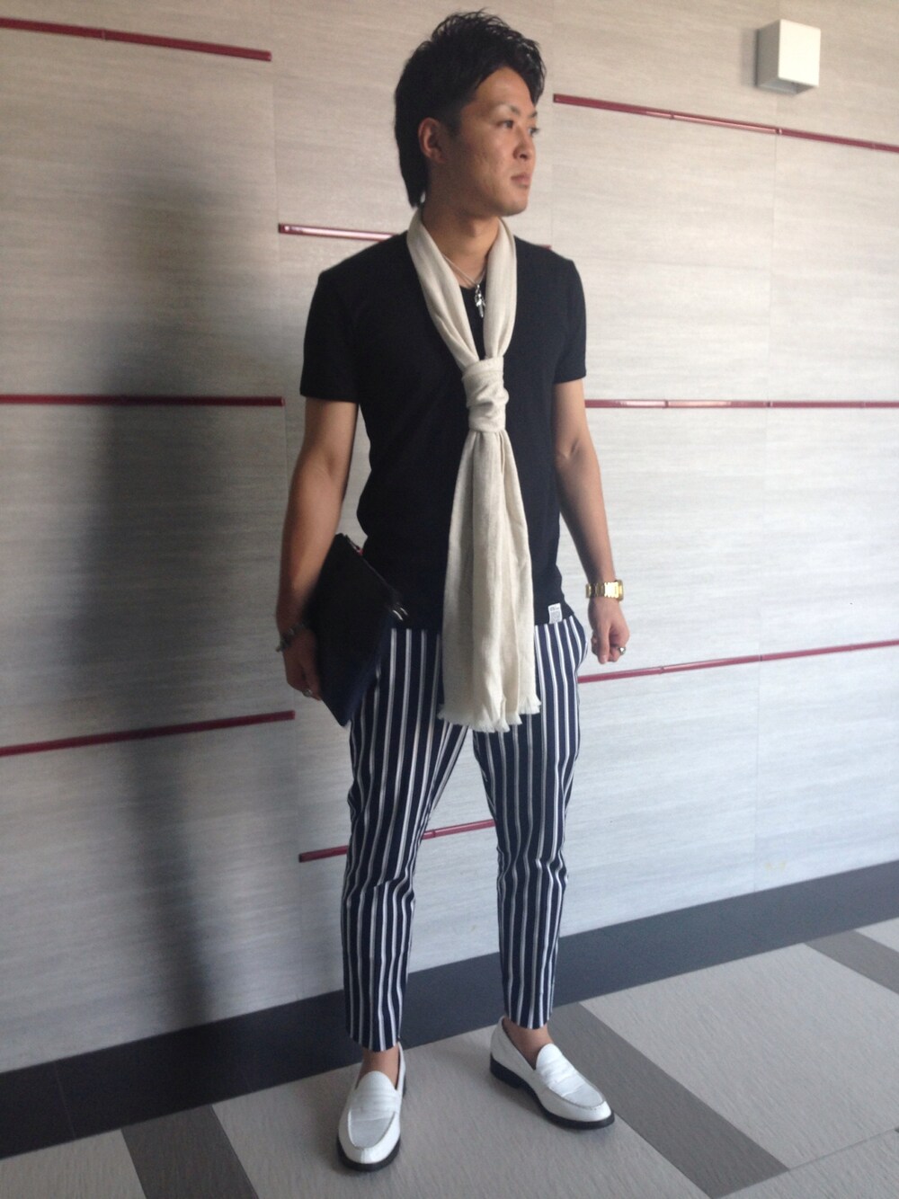 パパ、休みの日コーデ。 久しぶりにふたりで天神へデート👫 DOWBLに顔を出したらA/Wが入荷してて ストライプパンツを購入👖 早速履き替える。(笑) 今日はTシャツだったけど もう少し涼しくなったらジャケットと合わせてもいいね(*^_^*) クラッチバッグを買ったお店の名前が分からなくて残念😅(笑)