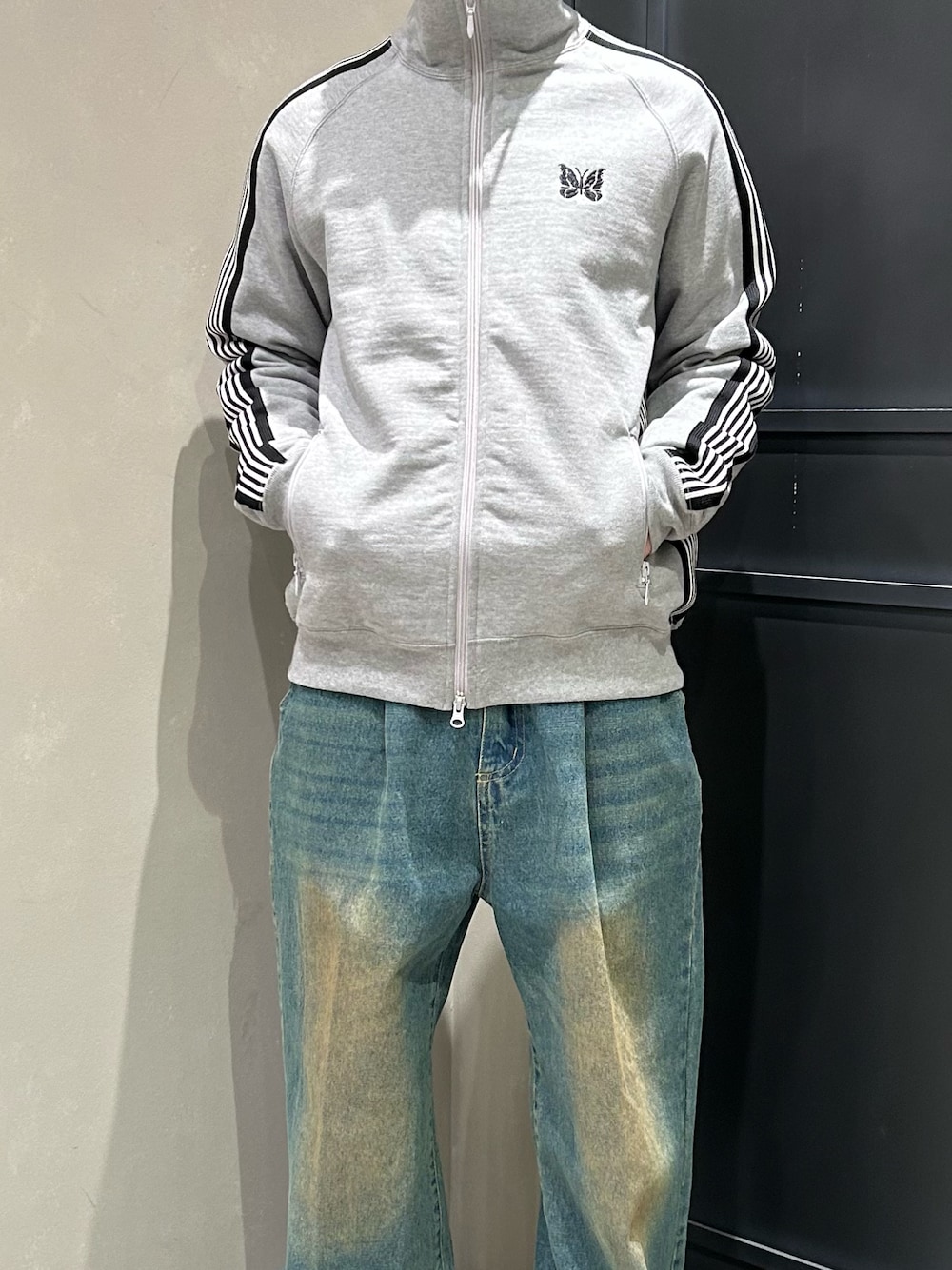 別注Needlesのジャケットと Bomnivoreのデニムパンツの相性が︎👍🏻 ̖́- tops:Needles size:M pants:Bomnivore size:M shoes:HOKA size:26