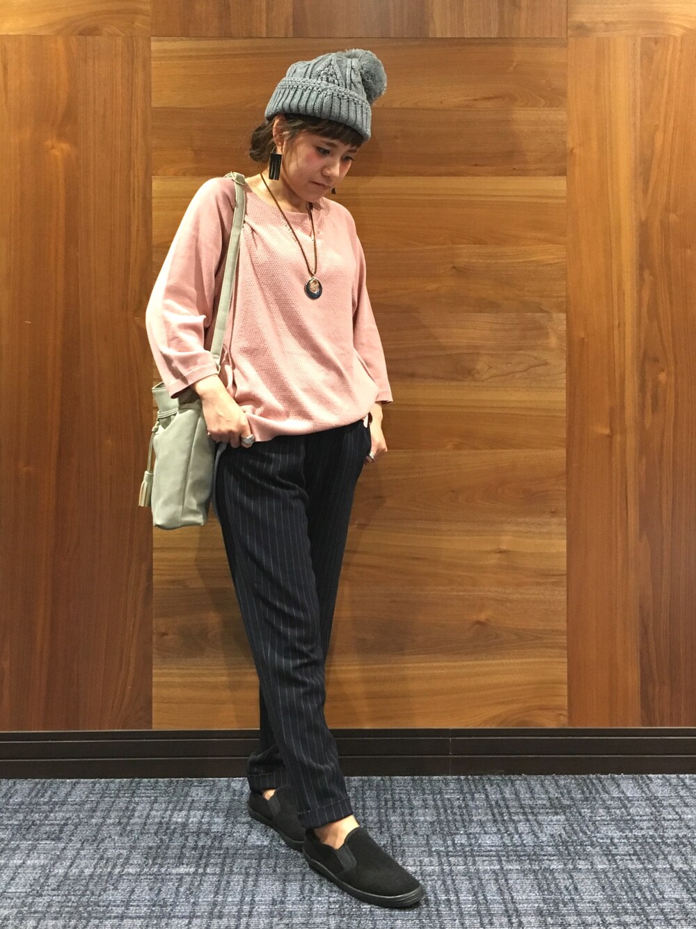 h1203iのニットキャップ/ビーニー「◆ポンポンケーブルニットワッチ」を使ったコーディネート