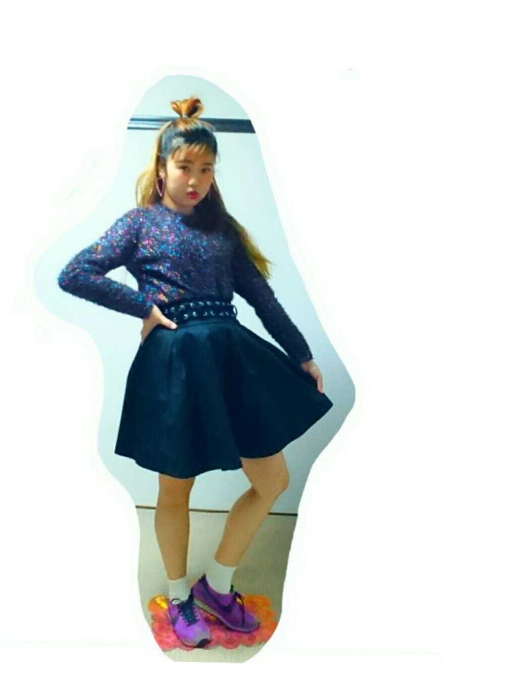 🌼 follow,イイネ,save ありがとうございます 🌼 H&Mのトップスはギラッギラなので 着ていると写真以上に目立っちゃいます🌟 デニムで合わせても可愛いですが 今日はスカートでコーデしてみました👍✨ これだけ主張の強いトップスなので スカートは黒でシンプルに、、、 でもウエスト部分にあるレースアップで 印象を残しています👸💗💗