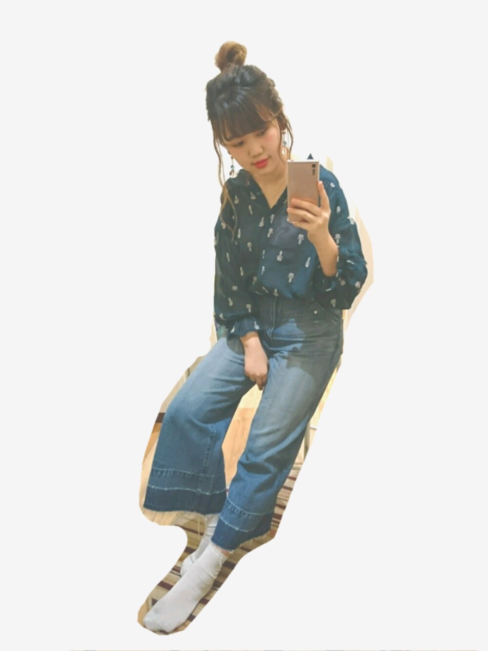 新作の刺繍ブラウス透け感がたまりません😭💓 袖口もキャンディースリーブで今年っぽいです😘