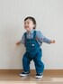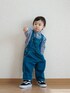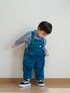 ご機嫌すぎてぶれぶれなぼく👶🏻笑 ストライプシャツ着回しコーデ👔 オーバーオールと合わせてみました🤭💙