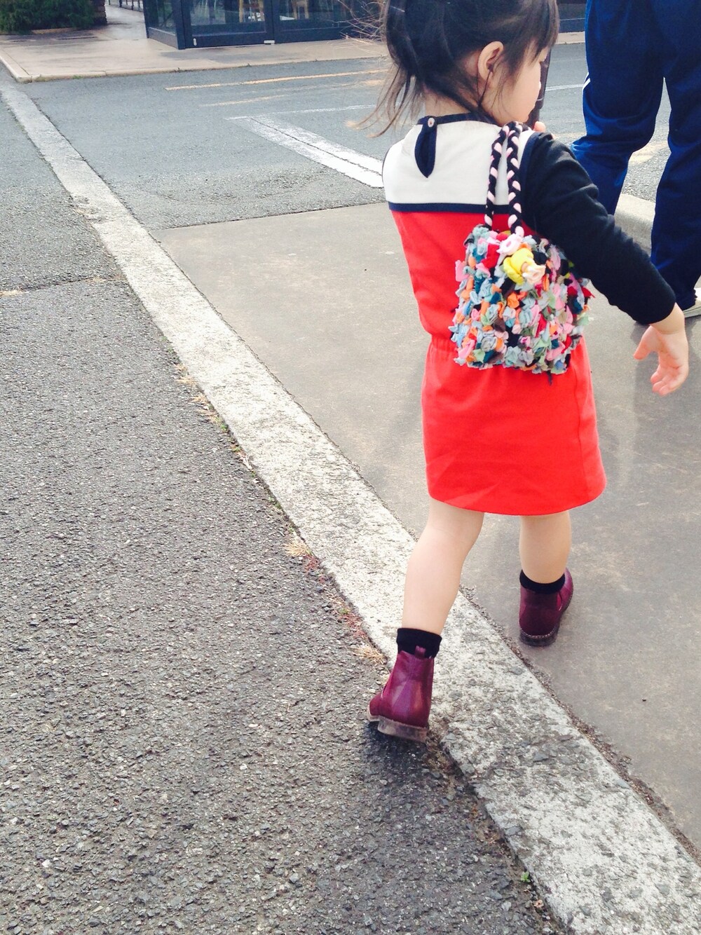 レッド系のワンピースを着用したキッズの夏コーディネートの1枚目の写真