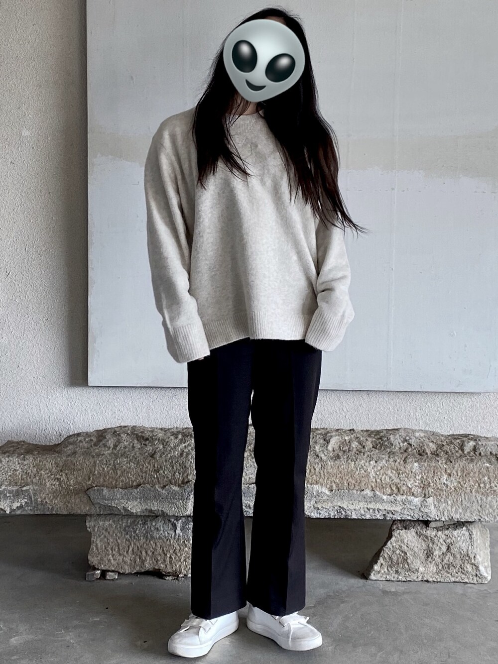 ヒマワリのニット/セーター「スフレヤーンモックネックセーター(長袖)セットアップ可能」を使ったコーディネート