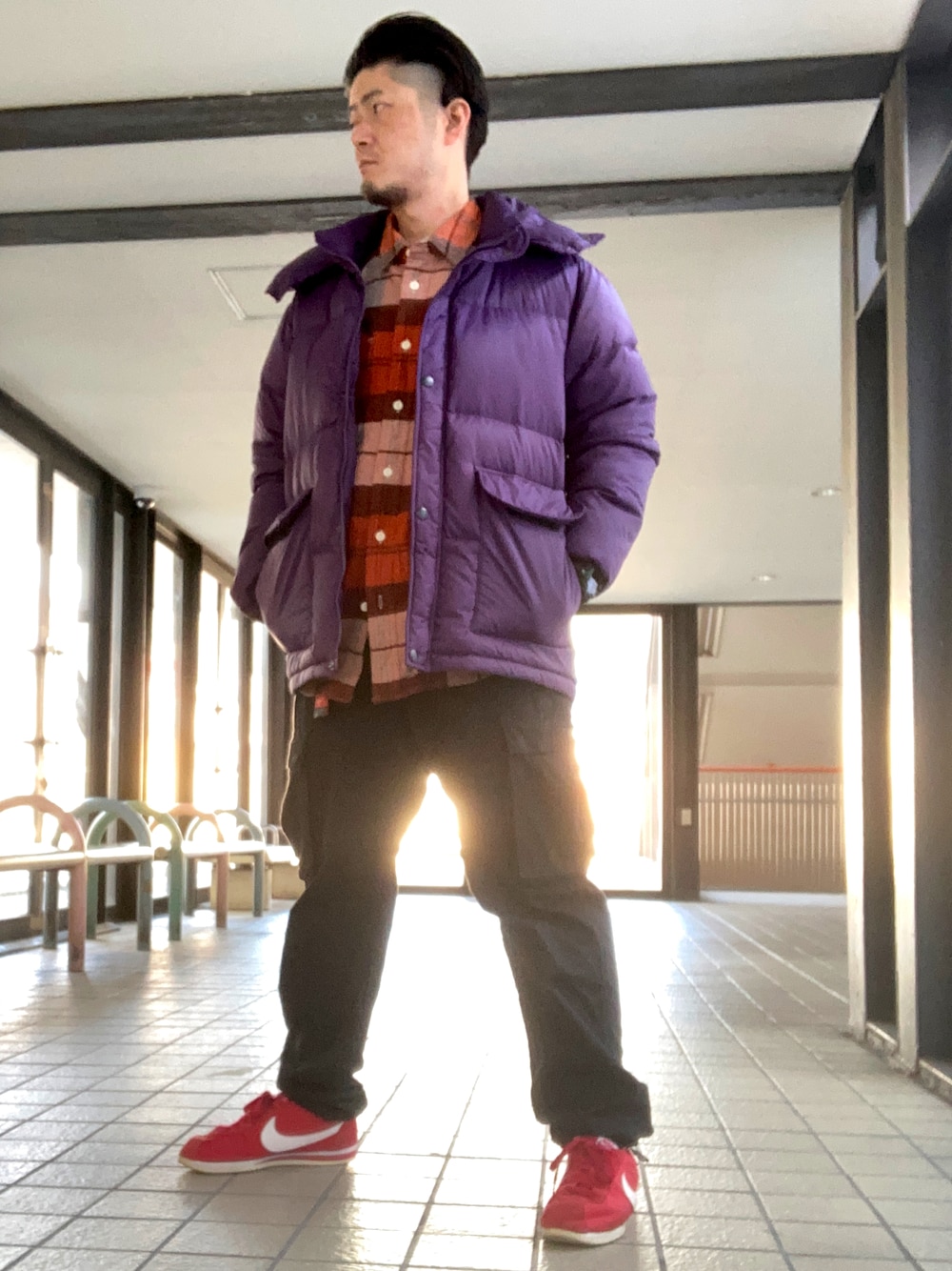 デニム履くのを敬遠するぐらい寒いですね。 ネルシャツで柄を入れたので、下はシンプルに。 コルテッツ久々に引っ張り出してきたのですが合わせやすいですね。