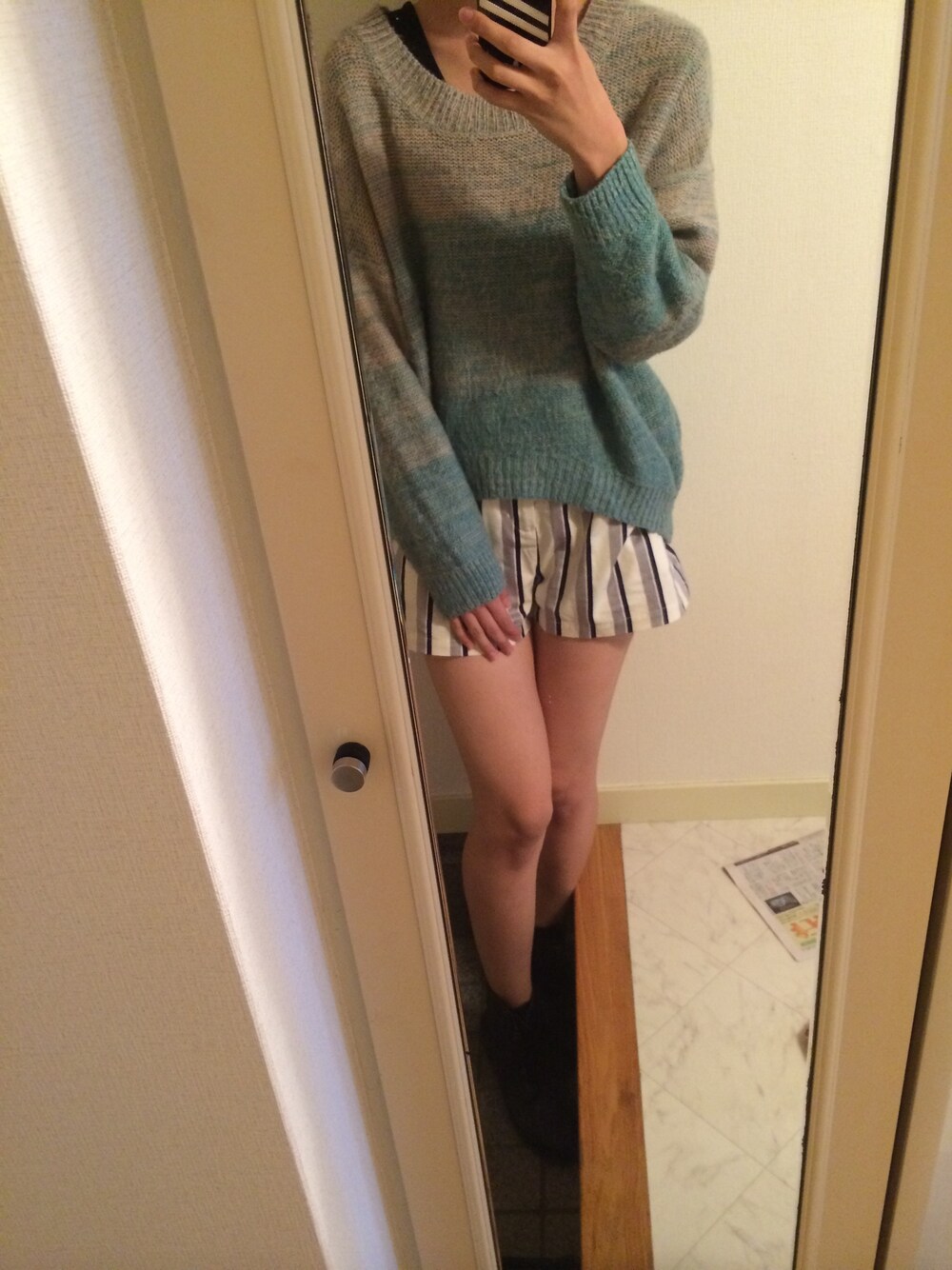 SLYのショーパンはminiのプレゼントで当たりました!! 去年買ったHeatherのニットと合って早速お気に入りです