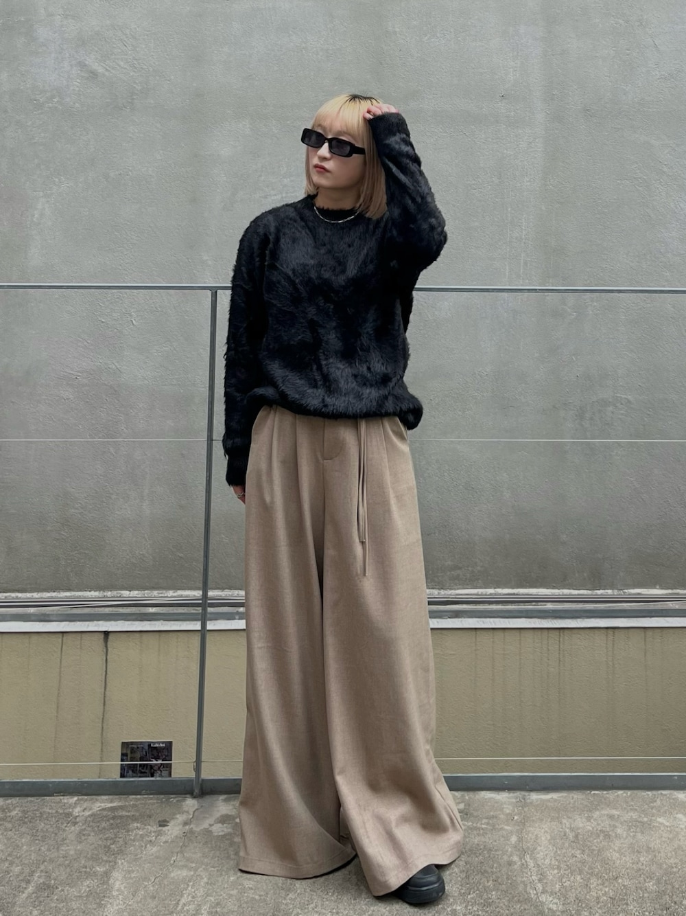 お気に入りのもこもこニット🫶 スラックス合わせがモードでかわいい🖤