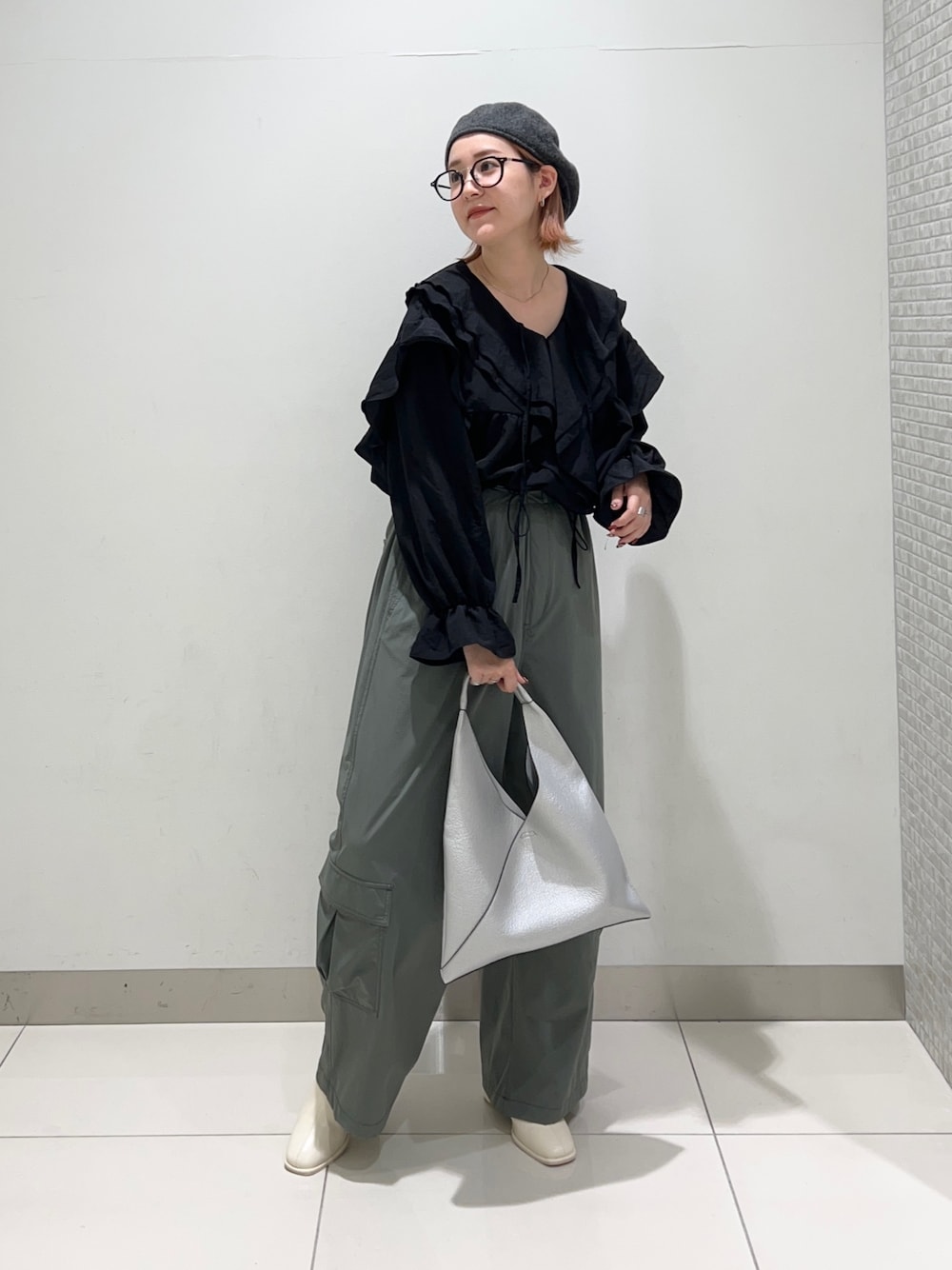 フリフリブラウスもカジュアルに🦭🌱 入荷前から大注目だったブラウスが ついに店頭入荷しました~~👏🏻👏🏻👏🏻 やっぱりかわいい、、♡ ガーリーな印象になりがちな大きめフリルを ミリタリー要素のあるアイテムと合わせて カジュアルさんも挑戦しやすいコーデに🤲🏻🩵 ブラウスはキャンディースリーブで 気温に合わせて袖丈を調節できます◎ パンツはKBFの2WAYサロペット✨ 今回はサスペンダーを外して着用しました〜 ウエストの絞りのところが ドロストになっててかわいい~🥹🫶🏻 ゆったりシルエットでらくちんですっ ぜひお試しください✔️✔️