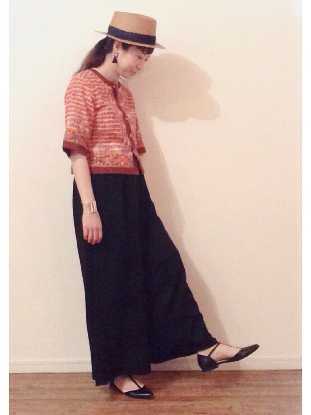 エスニック感のあるジャケットメインで他はシンプルに🍒 何年も前に買ったジャケットだけど今年も活躍しそう♡