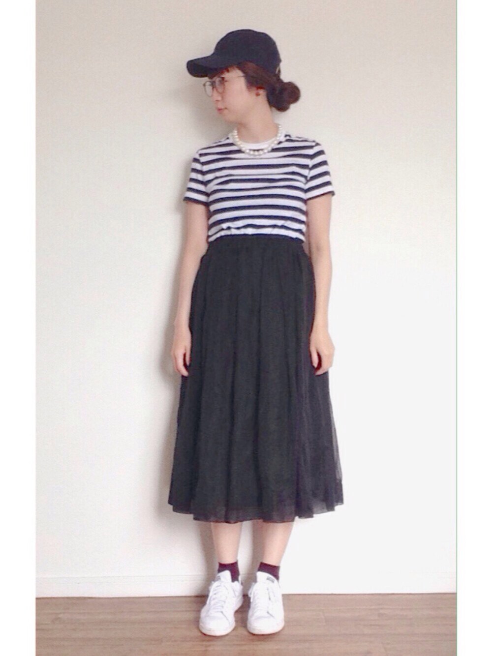 ボーダー×パールの組み合わせ好き♡ キャップでカジュアルに〜
