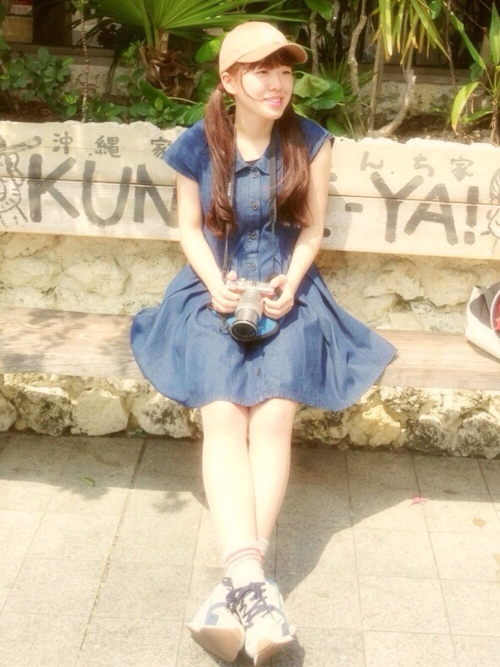 沖縄での写真です('ω' )三( 'ω') 帽子▷BEAMS ワンピース▷dazzlin くつ▷???