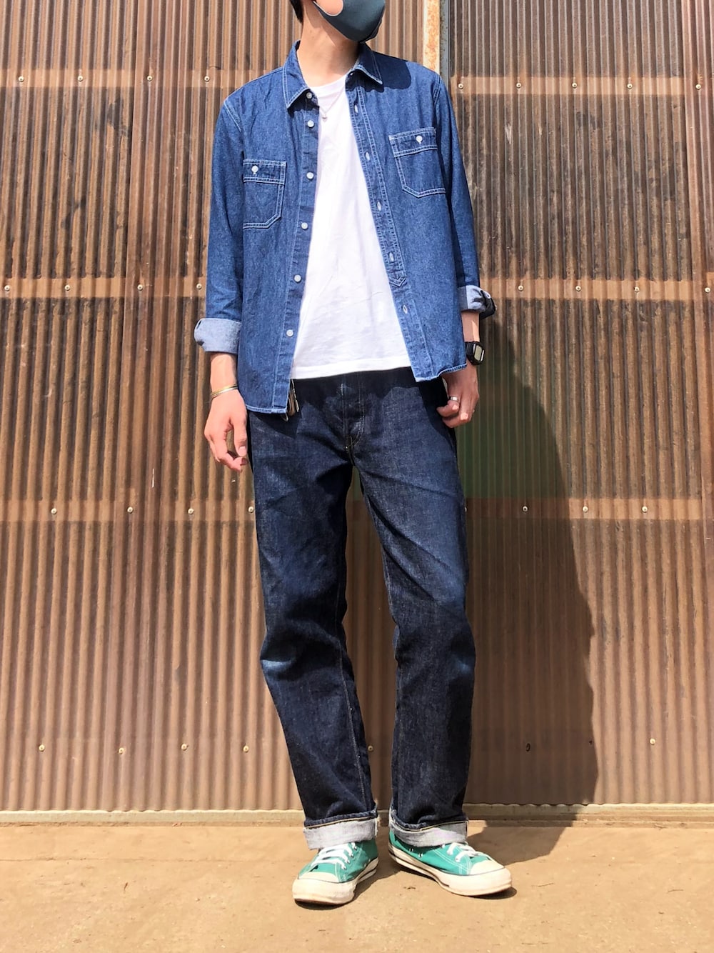 デニムオンデニム コーデ シンプルに古着屋のデニムシャツと FULLCOUNTのジーンズをカジュアルに合わせてみました。 足元もグリーンも相まって春っぽい感じです。 今日もありがとうございます。 毎日コーデを投稿しています、 また良かったら見てくださいね。