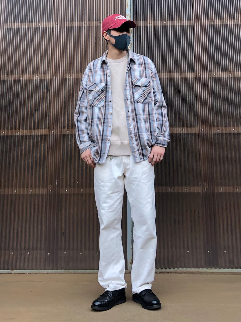 白パン×ネルシャツ カジュアルコーデ TRADESMANのペインターパンツに、 FiveBrotherの90's ネルシャツでカジュアルに。 インナーは暖かいDELUXEWAREのスウェットです。 今日もご覧頂きありがとうございます。 毎日スタイリングを投稿しています、 また良かったら見てください。
