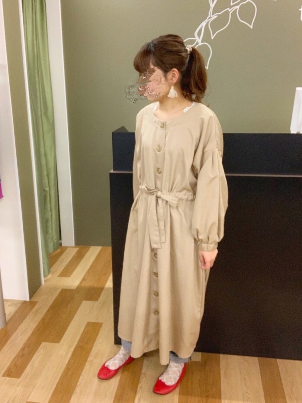 maiのワンピース「・ボリュ-ムスリ-ブ前ボタンカラ-ワンピース」を使ったコーディネート