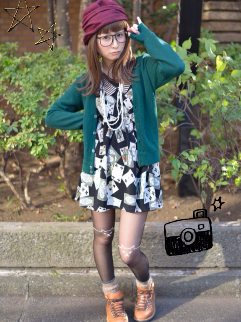 トランプ柄ワンピースのusedコーデ! ファッションスタイルBOOK、いしぼん発売中! 恵まれない子供たちに、ファッションを楽しむゆとりをプレゼントしたいです! ファッション好きな方、どうかご協力お願いします! 石本みほで検索お願いします!