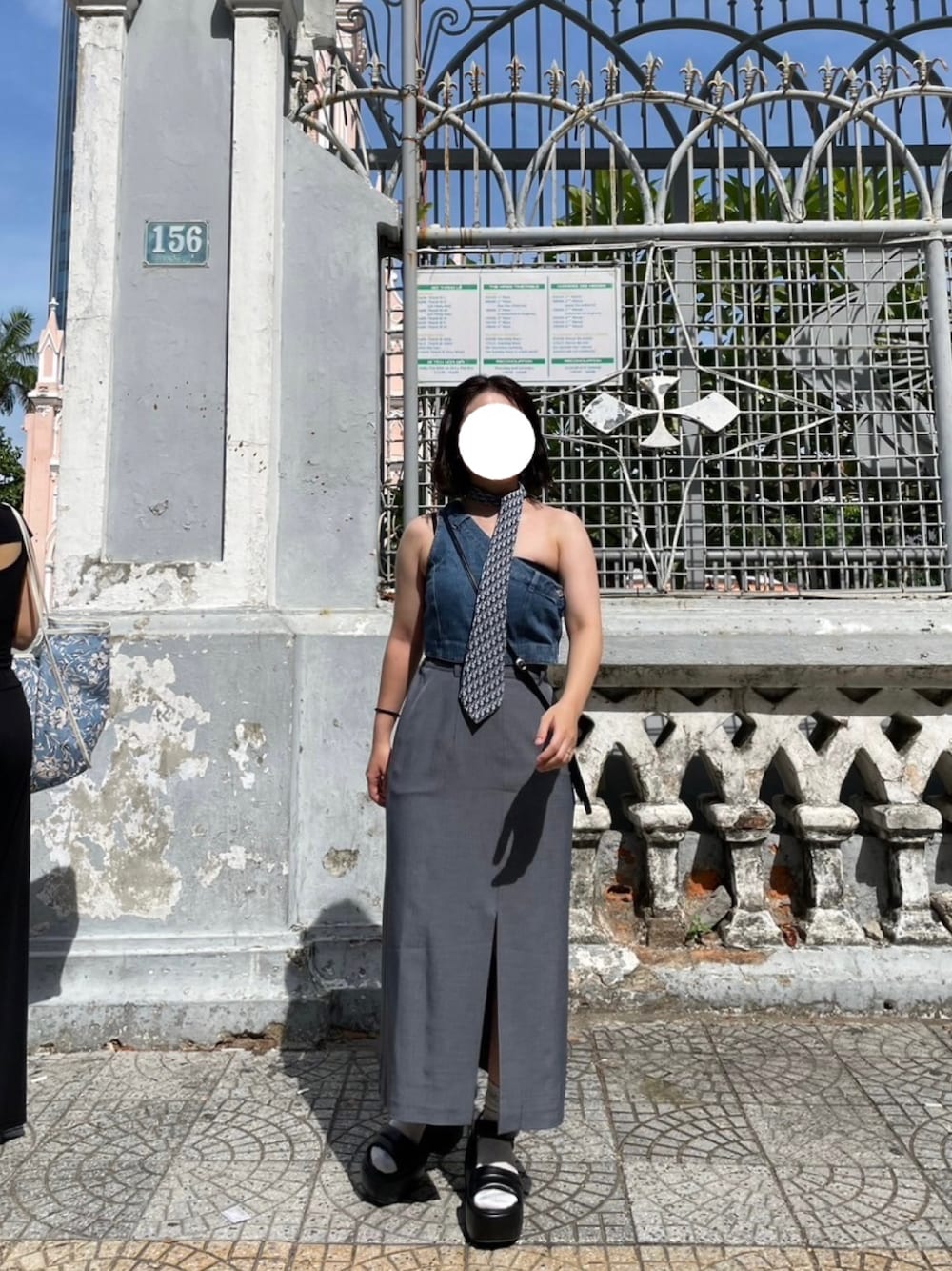高校生ぶりにグレイル見てみたら可愛いトップスあって即買い👚 チョーカー代わりに巻いたネクタイが思いの外、汗吸いまくってくれた🫠